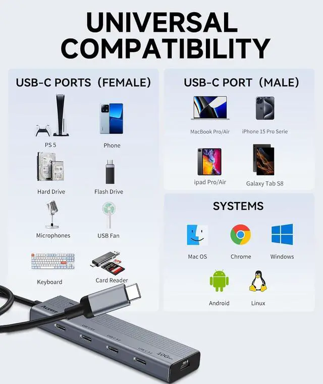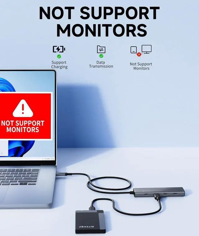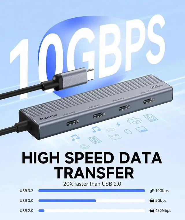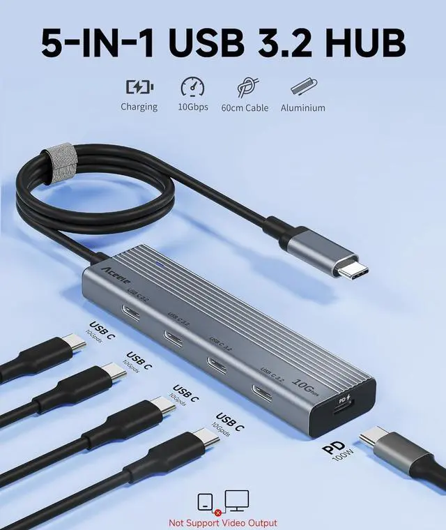 Compact USB C 3.2 Gen 2 HubAceele's USB C Hub Splitter features 4 USB C data ports, this USB C Adapter multiport allowing simultaneous use to meet daily needs. NOTE: This USB C hub multiport adapter is designed for data transfer only, none of the ports support external monitors.