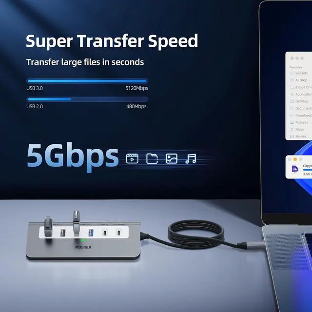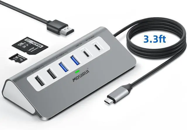 9-IN-1 USB C Hub : Mosirui USB C to HDMI Adapter is made of Aluminum material, expands a single USB-C port to 9 ports (1*HDMI 4K@30HZ, 1*USB-C 3.0+2*USB 3.0, 2*USB 2.0, 1*100W PD charging, 1*MicroSD card slot, 1*SD card slot).We upgrade our products according to customer and market needs. Extend the data cable to 100 cm (3.3 feet) to meet the requirements in various work scenarios.Plug and play, no software or drivers required.