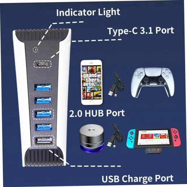 Desk USB hub:this USB hub is specially compatible for ps5 game console,usb hubs