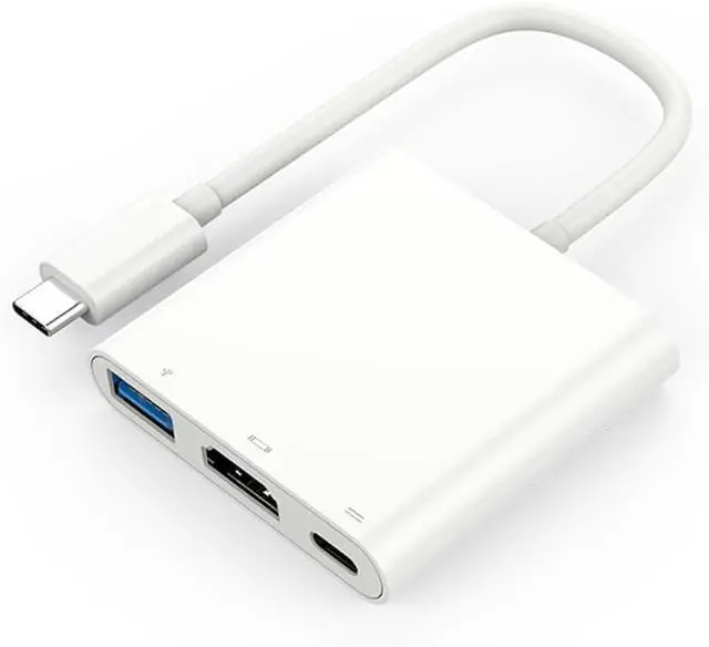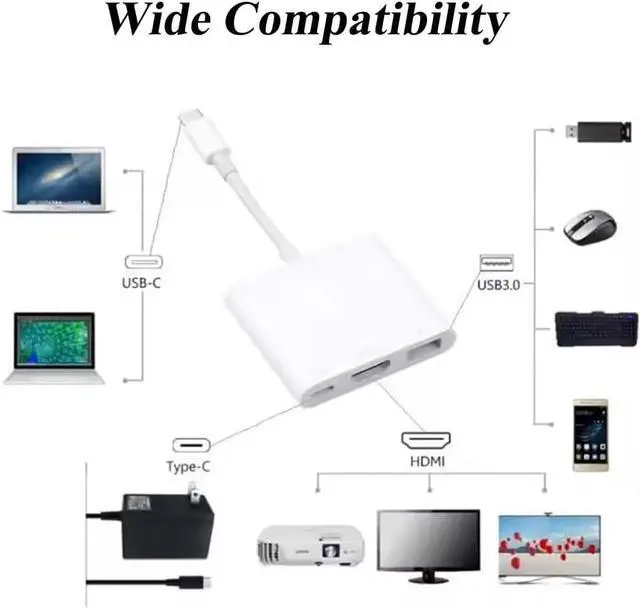 Multifunctional: This Type C Adapter is equipped with a HDMI port, a USB port, a USB C port which support connecting at the same time without any other drivers, just plug and play.