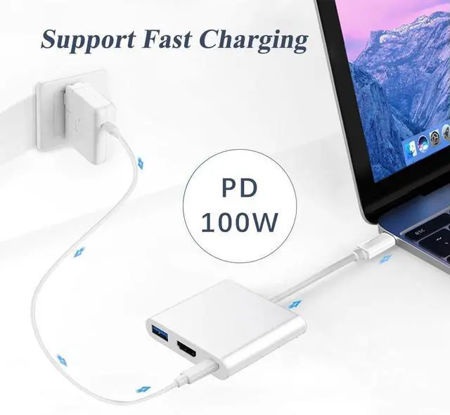PD 100W Fast Charging: Equipped with a charging port, this 3 in 1 USB C Adapter support PD 100W Fast Charging; you do not worry that the power shortage influences your work or entertainment.