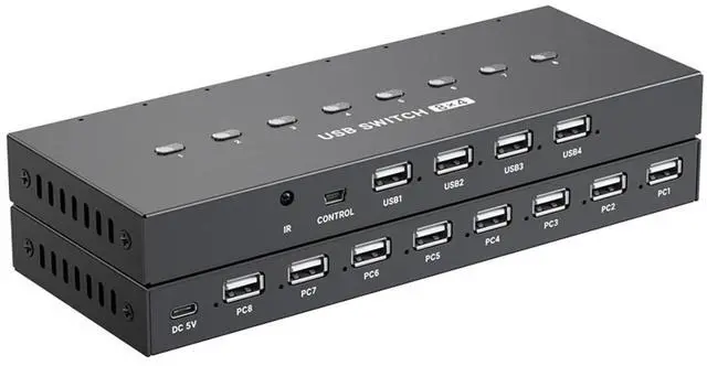 manage multiple devices with 8 in 4 out USB Switching Selector, allowing up to 8 computers to share a single set of peripherals such as a keyboards, and printer, enhancing productivity and efficiency