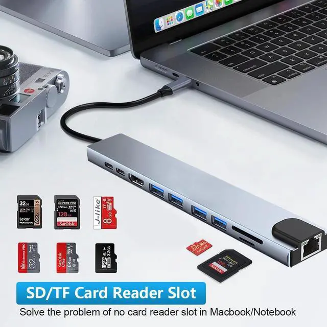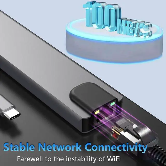 Stable RJ45 Network & SD/TF Card Reader: USB C Hub with Ethernet ensures a stable and faster wired internet connection which is up to 100Mbps, say goodbye to unstable networks. usb c hub multiport adapter built in SD and TF slots easily access files from universal SD card and Micro SD card, usb c hub support 2 cards reading simultaneously