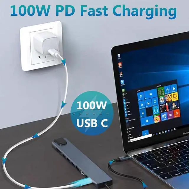 100W PD Fast Charging: The 10-in-1 usb c to hdmi equiped with upgraded advanced chip, its pd charging port can pass up to 100w power to a USB-C powered device, never worry about your device running out of power again. Widely used in various USB-C devices, compatible with MacBook Pro/ Air, iPda mini, iMac, iPhone 15 Pro Max, Google ChromeBook, Dell XPS, HP, Lenovo, Samsung Galaxy S23/ S23 and more