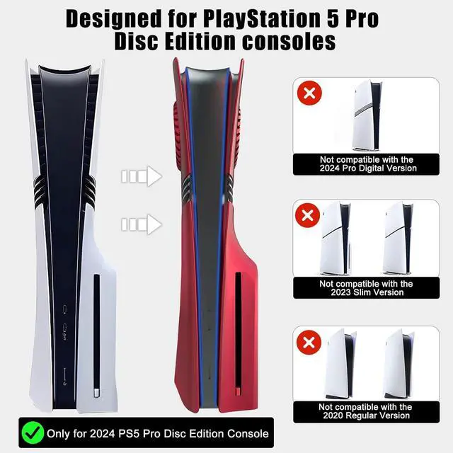 Designed for PS5 Pro Disc Edition Consoles:The face plates only for PlayStation 5 pro console disc edition. It works exactly like the original shell and perfectly replaces the original shell of PS5 pro console