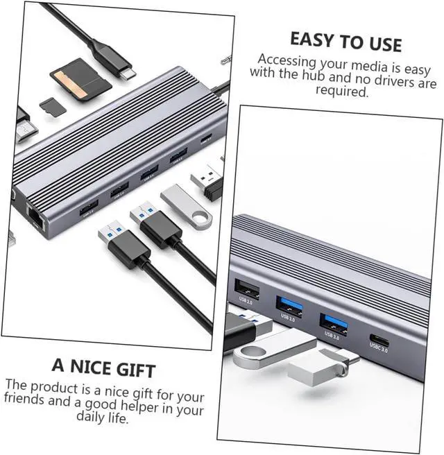 USB ports expander:with multi ports, supports mouse, keyboard, USB drive, portable hard drive, and etc,12-in-1 Hub Adapter