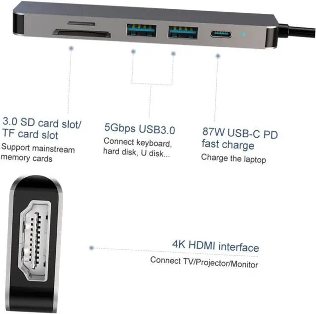 Type c adapter--6 in 1 docking station to solve the single interface problem of your laptop,laptop hub
