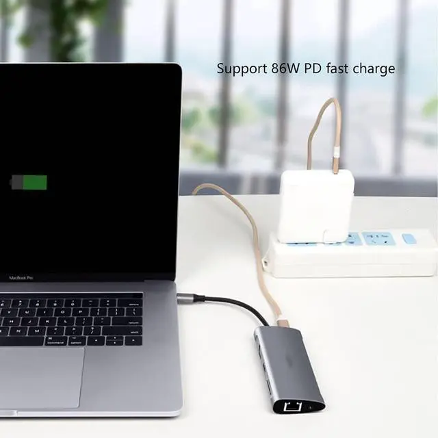 • Multiport USB Connection: USB C hub expands a single USB-C port to 11 ports (4K HDMI, 1080P VGA, Gigabit Ethernet, SD/TF Card Reader, 3 USB 3.0 Ports, USB 2.0 Ports, 3.5mm Audio Ports, PD 86W).