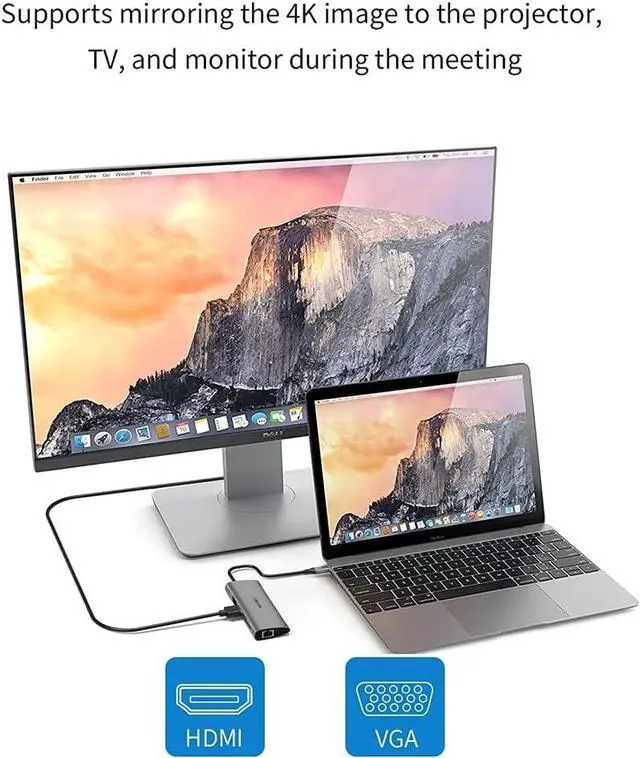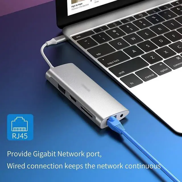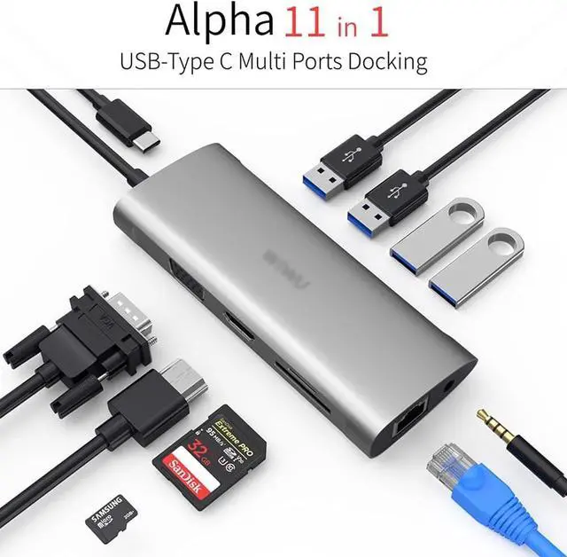 Multiport USB Connection: USB C hub expands a single USB-C port to 11 ports (4K HDMI, 1080P VGA, Gigabit Ethernet, SD/TF Card Reader, 3 USB 3.0 Ports, USB 2.0 Ports, 3.5mm Audio Ports, PD 86W).