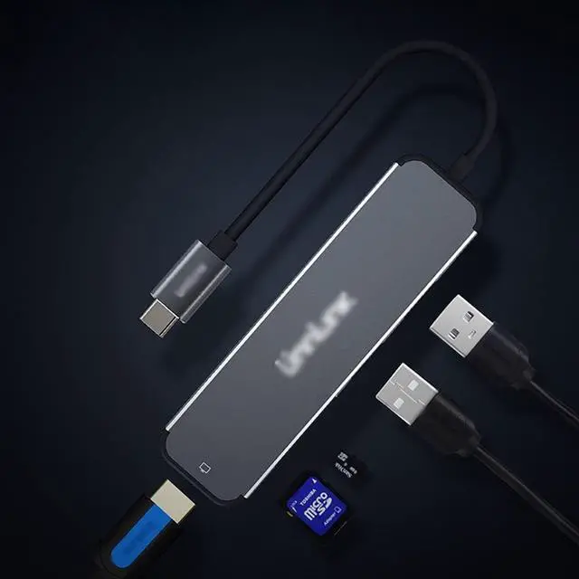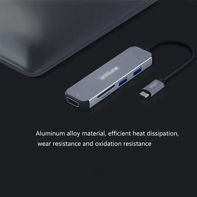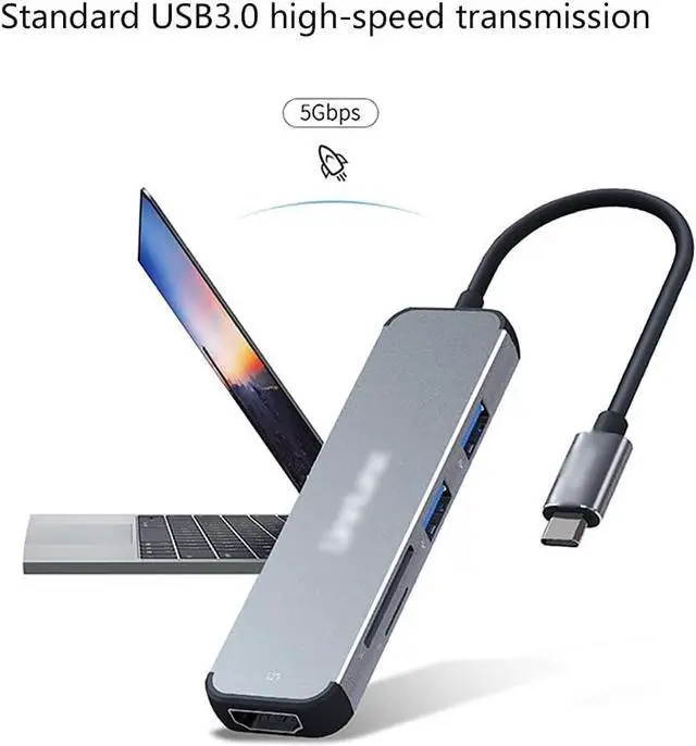5-in-1 USB-C hub: This multiport type c adapter with 4K*2K@30Hz HDMI video output port, 2 USB 3.0 ports and SD/TF Card Reader.