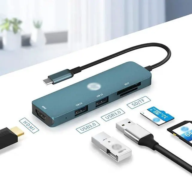 USB Type C Hub: 5-in-1 USB-C Hub equipped with 4K@30Hz HDMI port, 2 USB 3.0 ports, SD/TF Card Reader.
