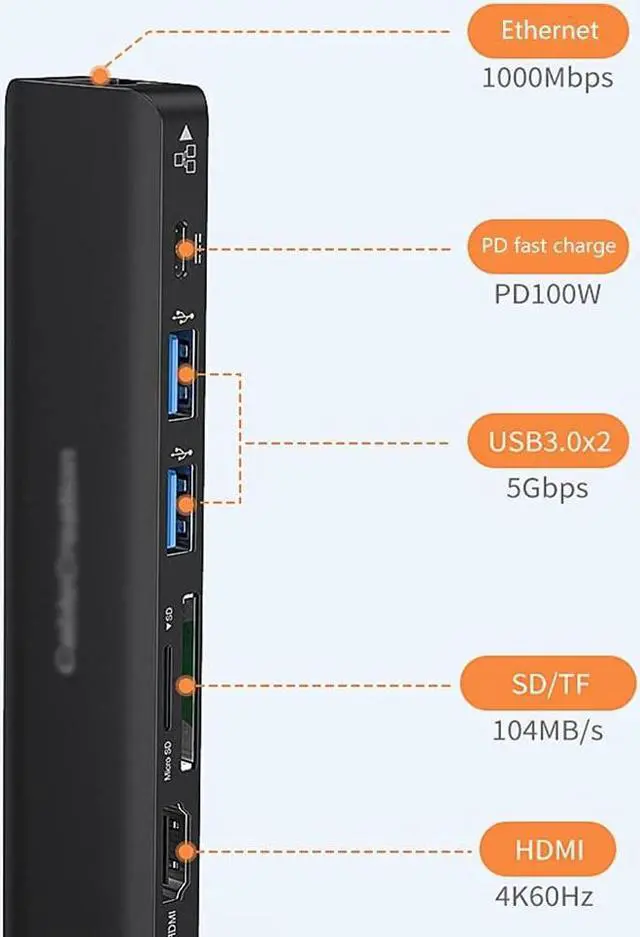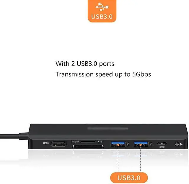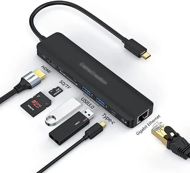7-in-1 Multiport USB Connection: USB C hub expands a single USB-C port to 7 ports (4K@60Hz HDMI, Gigabit Ethernet, 2 USB 3.0 Ports, PD 100W, SD/TF Card Reader).