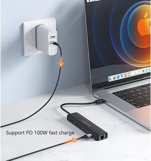 100W PD: This USB-C hub supports up to 100W fast charging and USB 3.0 500MB / S data transfer, so your USB-C laptops can stay fully charged.
