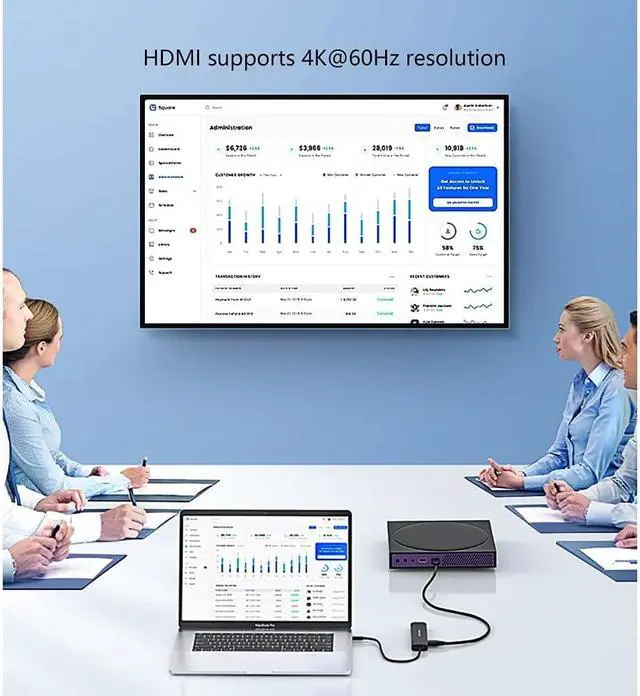 4K UHD HDMI: Enable you to mirror or extend the USB-C host screen to HDTV, monitor or projector with a resolution up to 4K UHD(3840 x 2160@ 60Hz) via the HDMI output port.