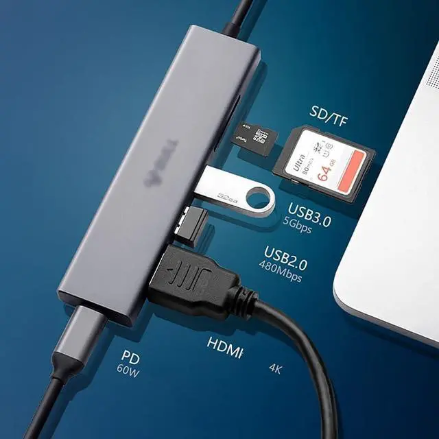 Extensive Capability: Connect to the latest USB-C devices with the multiport USB-C hub featuring 4K HDMI port, SD/TF card reader, PD 60W, USB 3.0 Ports and USB 2.0 Ports.