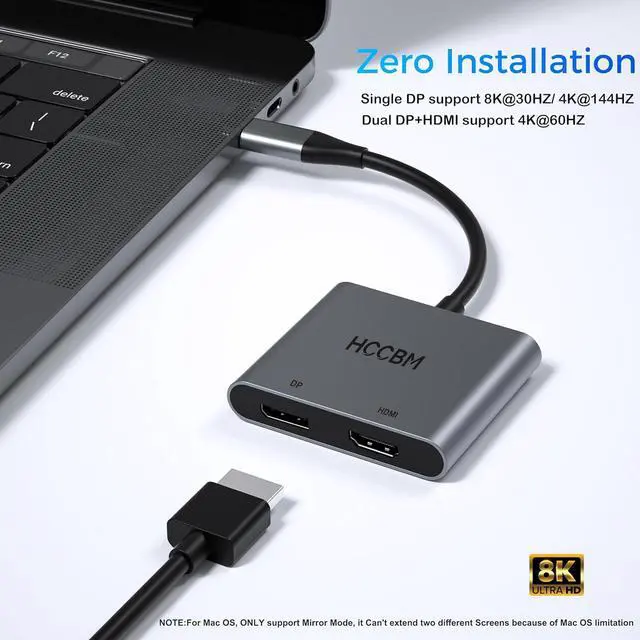 Dual Monitor adapter for laptops(2 IN 1): This dual monitor adapter expend your laptops usb c ports into 1 dp+ 1 hdmi. Use this usb c dual display port donlge extend your 1 monitors to two external multiple monitors(support different images on your monitors) and this dual display port adapter allows you to do different project on different monitors. Boost your work productivity and efficiency. It is an ideal usb c accessories for photography,programmer, data analysis, etc