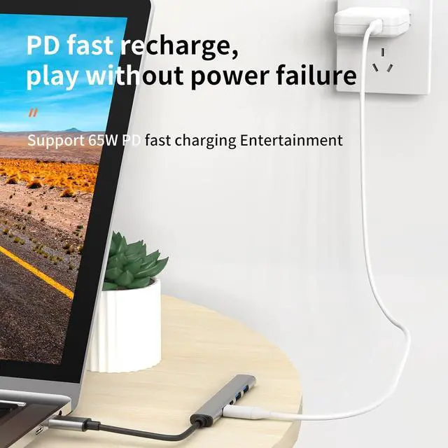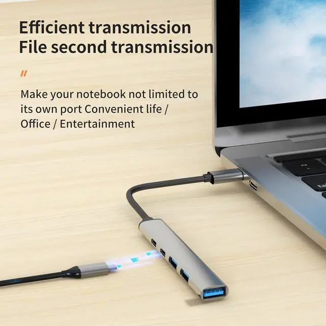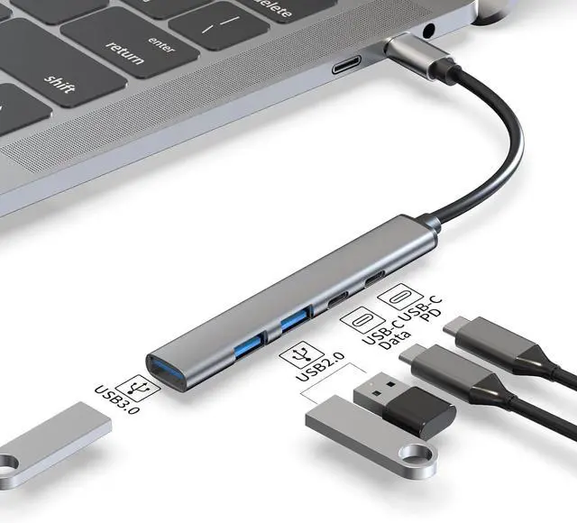 All-in-one 5-in-1 design:This Type-C Hub combines USB 3.0, dual USB 2.0 ports, PD fast charging function, and USB-C data ports to fulfill your various connectivity needs. Whether you are transferring data, charging devices or connecting peripherals, this Hub is a one-stop solution.