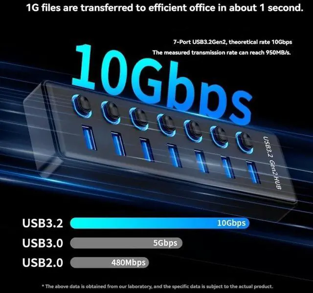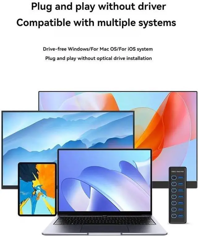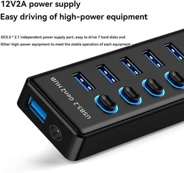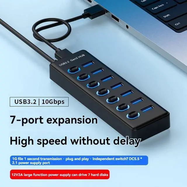 [7-Port USB3.2 Hub] USB hub turns one USB port into Seven, support for USB Flash drive, Mouse, Keyboard, Printer, or any other USB Peripherals. And it's backward compatible with your older USB 2.0/1.0 devices.