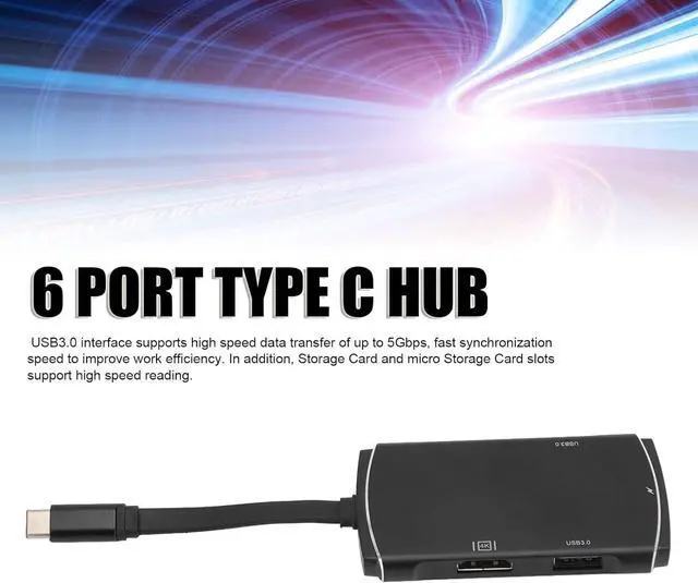 MULTIFUNCTIONAL: Our 6 in 1 USB Typ-C HUB Multiport Adapter combines 4K HD output, USB 3.0 interface, PD fast charging, SD card slot, and small SD card slot, providing a comprehensive solution for all your connectivity needs.