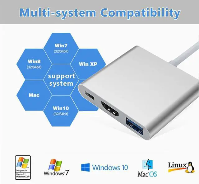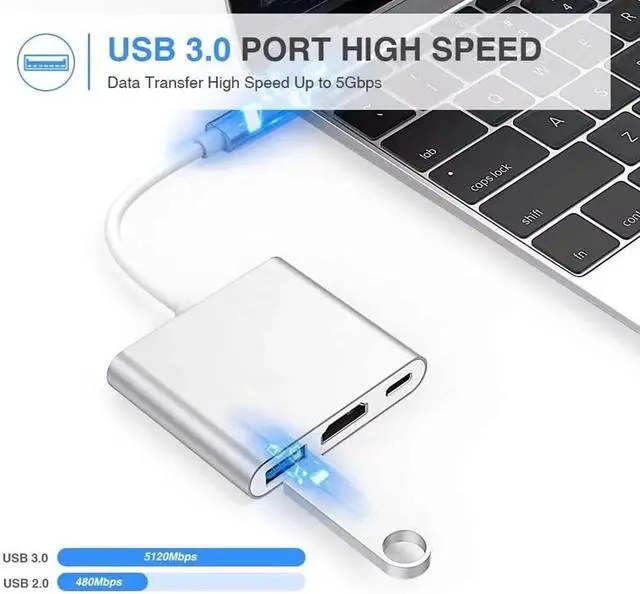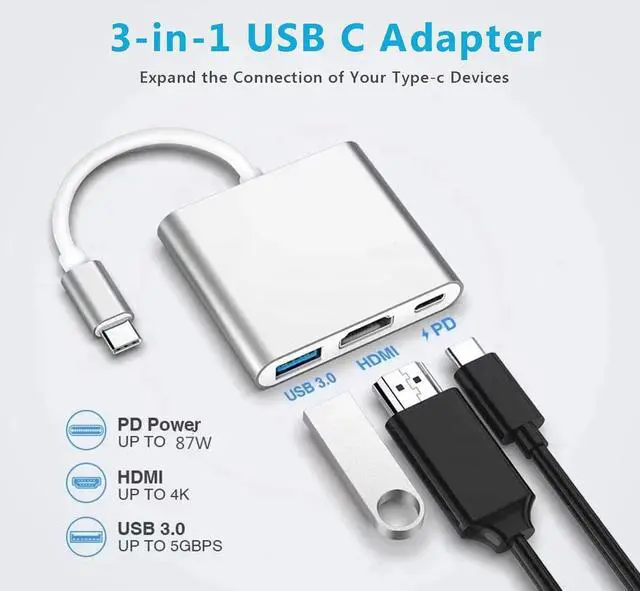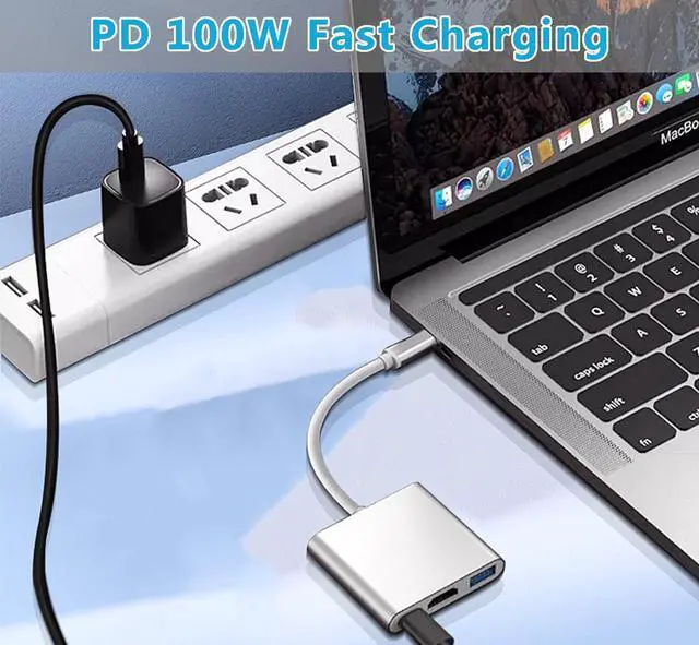 3 in 1 USB-C to HDMI Adapter: Our multiport usb-c hdmi & charging adapter included a 4K@30Hz HDMI port, USB 3.0 Type-A port and a PD 100W fast charging USB-C port. Lightweight and portable, easy to carry around in pocket. Convenient for home-theater entertainment, office, presentation, exhibition, teaching etc