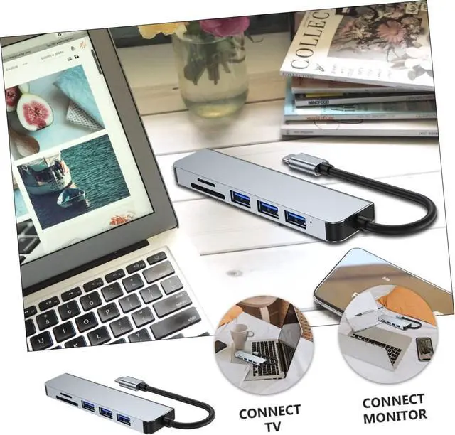 USB splitter: 6-in-1 multifunctional docking station to solve the lacking interface problem of your notebook,flash drive adapter.