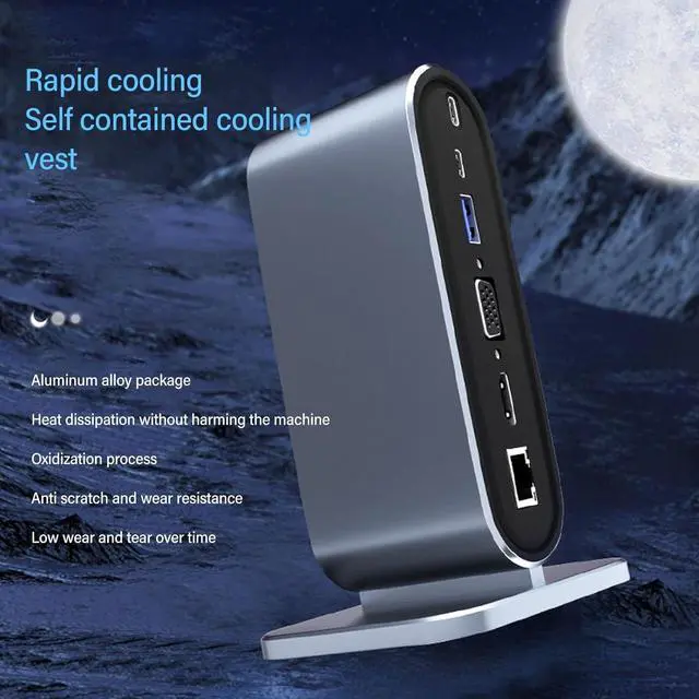 PRACTICAL ACCESSORY, ALUMINUM CASE: Vertical 12 in 1 docking station to solve the problem of laptop shortage. Aluminum alloy one piece shell, anodized process support, strong heat dissipation, durable, easy to carry.