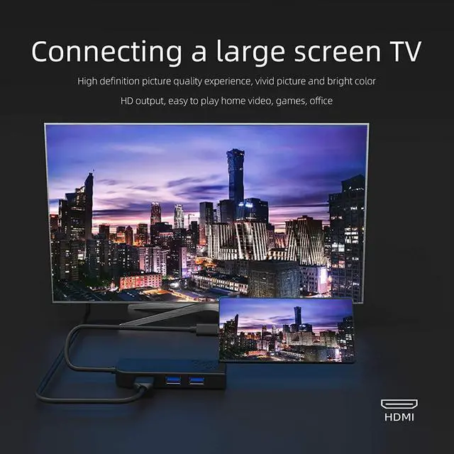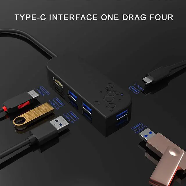 USB DOCKING STATION:5-in-1 USB hub with TYPE-C interface + USB3.0 interface X3 + HDMI interface, plug and play, Ideal partner for laptops, computers, tablets and mobile phones