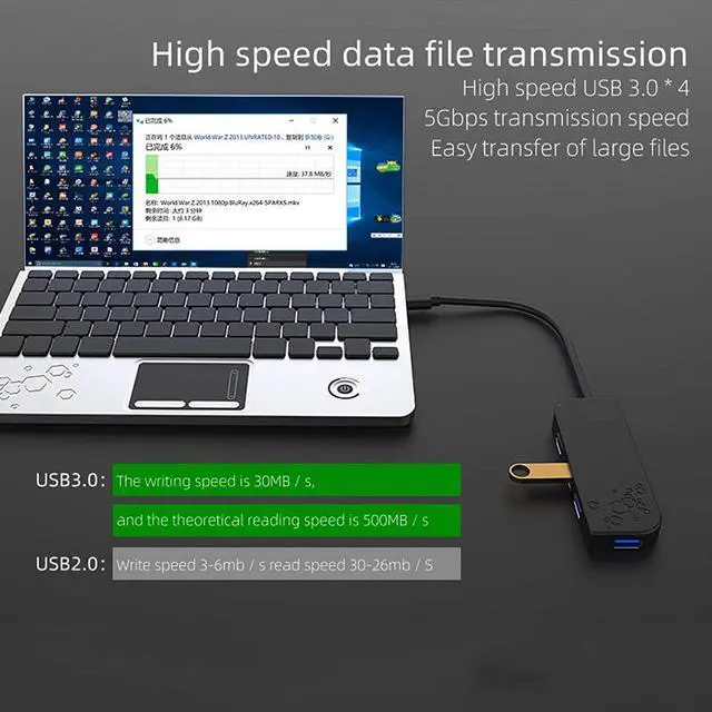 STABLE TRANSMISSION:The smart chip effectively shields external signal interference to ensure efficient signal transmission. The file transmission speed can reach 5Gbps.