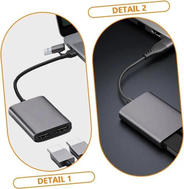 2 port USB hub: dual high-definition display modes: connects two monitors simultaneously, allowing dual high-definition display to enhance work efficiency,usb expander