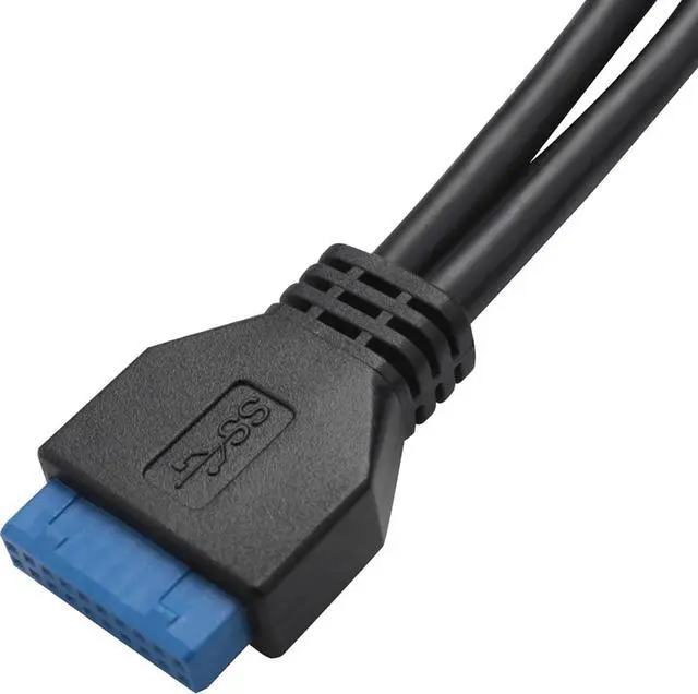USB3.0 female to USB3.0 20-pin male design. High intensity shielded wire to the stable transferring speed rate. Easy solution for extending two USB port in front of the computer. Plug and play, easy to install. Color: Black