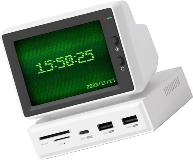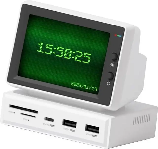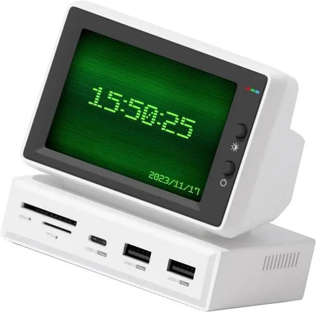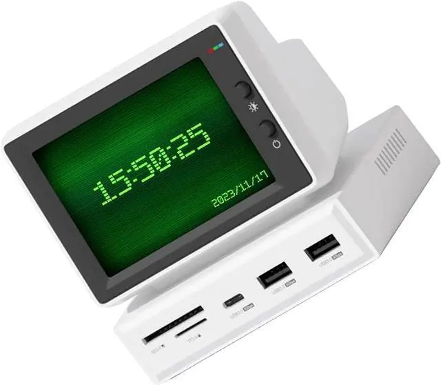 2 in 1 Design: This original design PC USB C hub combines the USB C docking station and IPS screen with 5Gbps USB3.0x2, 5Gbps USBC, storage card or Micro storage card 3.0, AUX and 5V 2A power supply ports. Screen resolution upgraded to 960x640, resulting in clearer images.