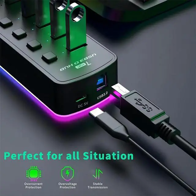 The 7-port usb hub hub with 7ports for easy connection of multiple external devices to meet the needs of multiple devices working at the same time.