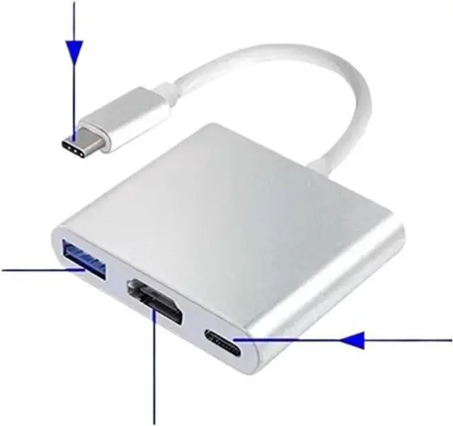 3 in 1 USB C to HDMI-Compatible Adapter USB 3.1 Hub TY>pe C Converter for S23 Ultra Note: The 3IN1 adapter does not support functions.