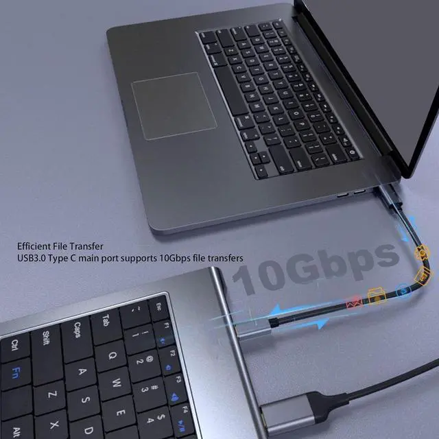 10GBPS DATA TRANSFER: 10Gbps USB A and 10Gbps USB C data port on the front of the dock. Their super speed data transfer is ideal for drive and HDD devices, the time required to transfer a 20G file just needs 16.4s! And together with the Storage and Memory card slots, you can transfer data between devices at some fast speeds!