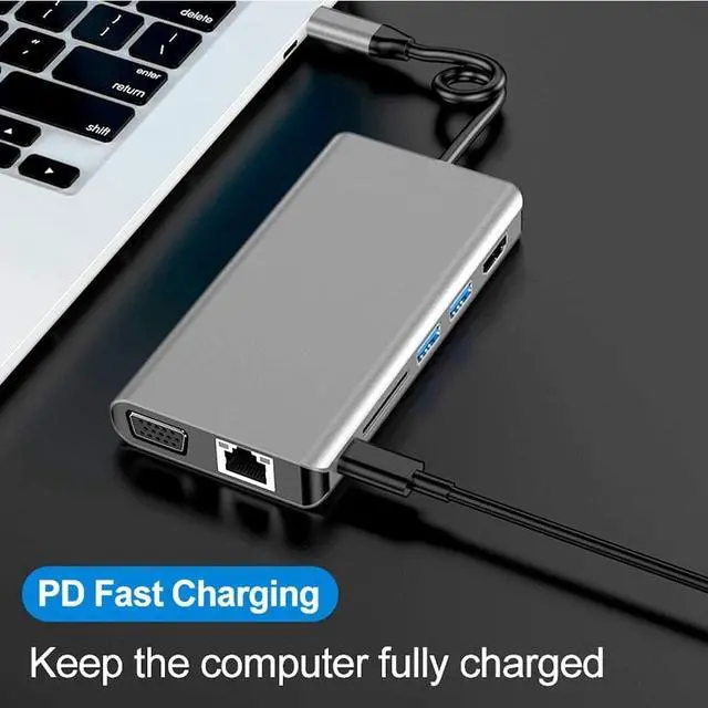 Multi-Functional Hub: The Type-C docking station offers an 8-in-1 connectivity, including USB3.0 x 2, , VGA, Audio, Gigabit Ethernet, and Type-C PD port, making it an excellent choice for Type-C expansion ports.