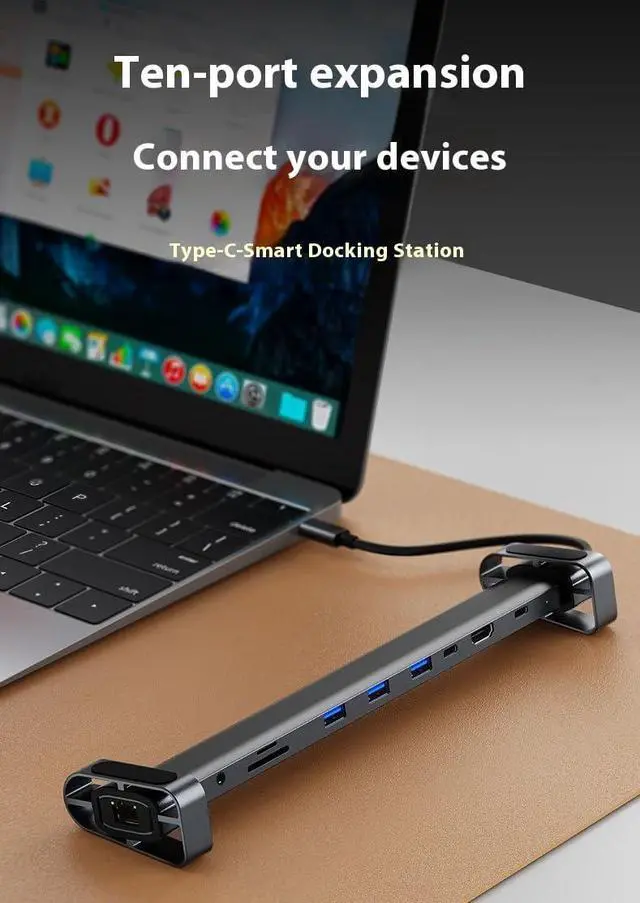 [High-speed connectivity and efficiency] :USB 10-in-1 Docking hub 3.0 hub enhances your digital experience with seamless integration with MacBook Pro, iMac, PS4 Pro, Surface Pro and more. Its USB-A and USB-C ports ensure universal compatibility and fast data management, saving valuable time and reducing the need for multiple adapters. Increase efficiency with a gadget that seamlessly connects your technology.