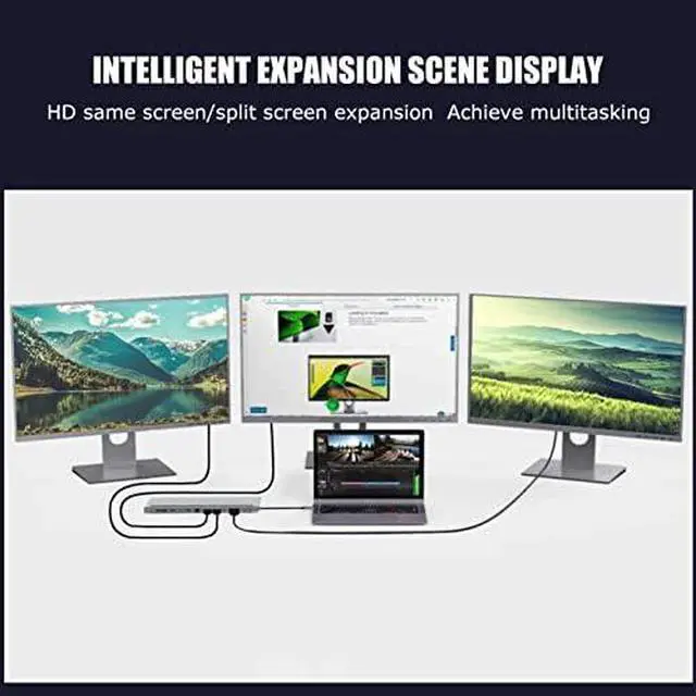 Dual Display Function: USB C to Dual HDMI Adapter allows your USB C laptops to extend 2 different monitors which offers you more space for work and you can do different project on different monitors. An ideal gadget for video editor, photography, programmer. ,12in1 Hub