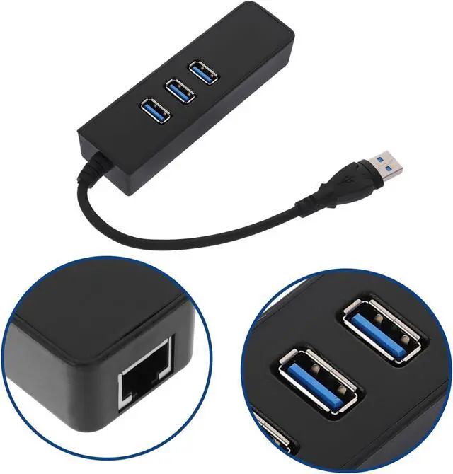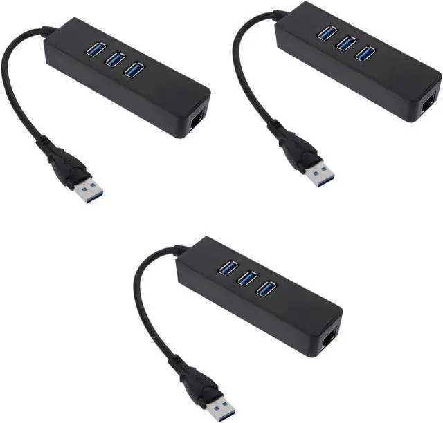 Ethernet lan network converter: 3-in-1 dual functionality: three USB 3.0 ports and one 1000m gigabit ethernet adapter.