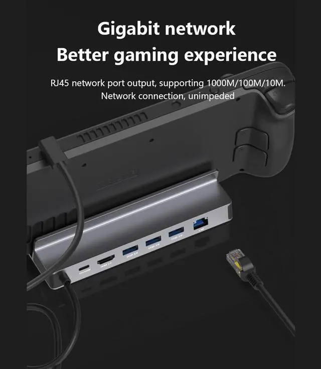 Designed for gamers and professionals alike, this SteamDeck Dock enhances productivity with its high speed data transfer technology.Elevateyour gaming experience with the SteamDeck Dock, featuring HDMI2.0 for 4K60Hz video output.