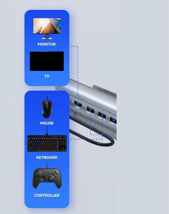 2. USB3.0 x 3 (can be connected to multiple USB devices such as game controller, mouse, keyboard, USB flash disk, etc., file transmission, and the transmission speed can reach 5Gbps)