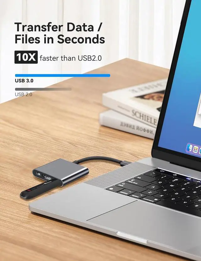 5Gbps High Speed Data Transfer Compared with USB 2.0 (480 Mbps), the USB 3.0 multiport adapter hub is 10 times faster which supports a maximum data transfer speed of 5 Gbps, making you transfer large files and videos in seconds. And the HDMI converter for Macbook air also can easily transfer USB keyboards, mice, hard drives and flash drives. Note: this type-c to HDMI adapter only allow connect 1 HDD/SSD and won't support Apple USB Super Drive.