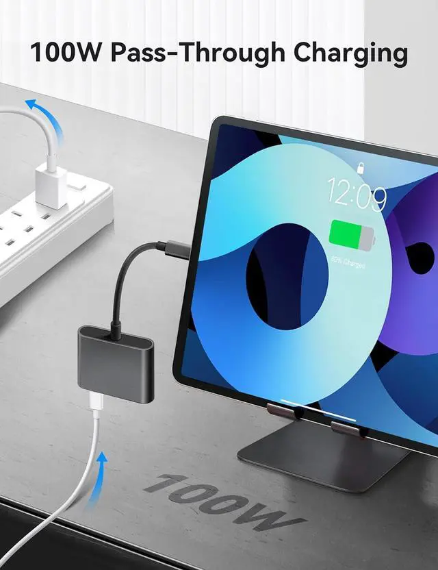 Fast ChargingThe HDMI adapter with built-in 100 w USB-C PD port can provide fast charging for notebook/tablet/mobile phone. Note: Please make sure your laptop's USB-C port supports the Power Delivery protocol, recommended for a minimum of 65 w power adapter.