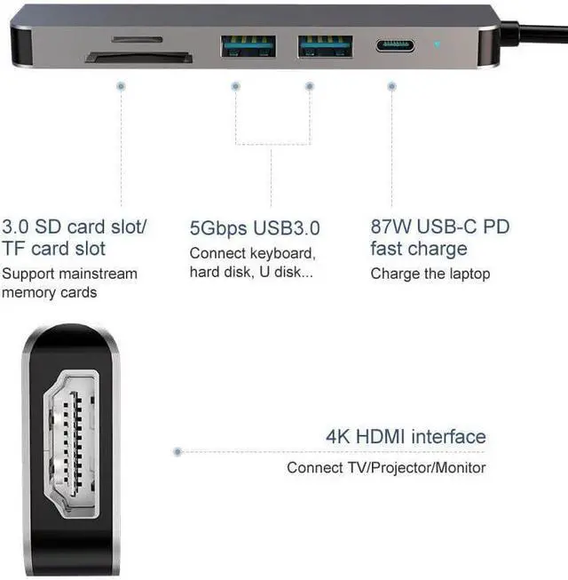 4K HDMI Video Adapter, enjoy beautiful, crisp high-resolution 4K (4096x2160@30Hz) displays by simply connecting an HDMI cable from the USB C hub to any HDMI-enabled monitor or projector.