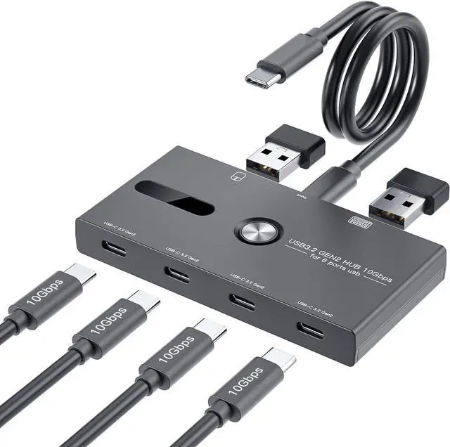 6-Port In addition to 4 USB3.2 GEN2 specification Type-C ports, this HUB also has two USB2.0 specification traditional A ports, so you can directly connect A port devices such as keyboard, mouse, printer, camera, etc. on this HUB.