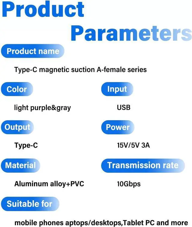 Product interfaceMagnetic Type-C male plug / USB-A female jack