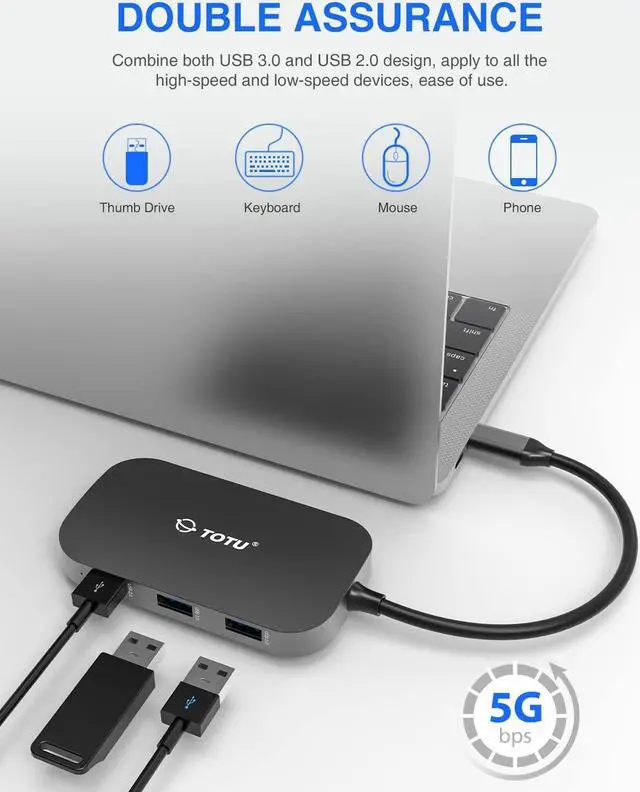 Compact and portable: TOTU USB C hub is light and compact, you can put it in your pocket easily. You can conveniently take it on-the-go for business travel and more.