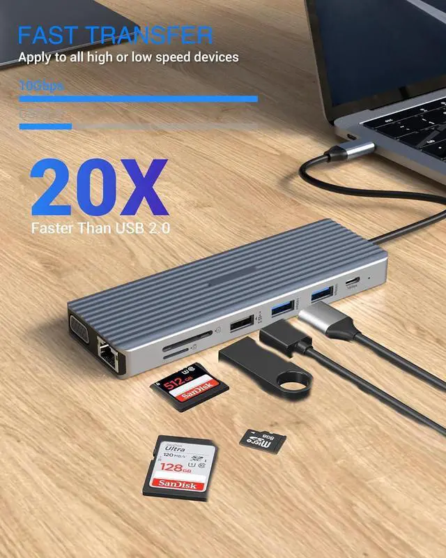 Efficient File Transfer: With transfer speeds of up to 10.0Gbit/s, this USB C 3.1 is ideal for transferring large files without long wait times and is compatible with USB 2.0/1.1.SD/TF card readers enable fast hard drive reads and easy drives, making file transfers easier.