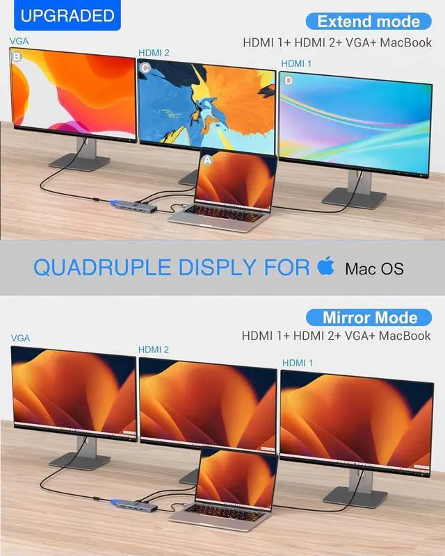 TOTU Multi-Port Docking Station: 14-in-1 Multi-Port Hub includes 2*4K HDMI, 1*VGA, 1*USB A 3.1, 1*USB C 3.1, 4*USB A 2.0, Gigabit Ethernet, SD&TF, 100W PD, and 3.5MM jacks, which can satisfy most of the ports you need in your daily work and life, which can greatly solve the problem of PC's lack of ports.