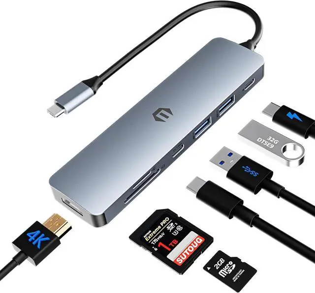 Exceptional Multiport USB C Hub: Experience the convenience of TOTU 7 in 1 USB C dock, offering 1 external video output with 4K@30Hz HDMI, rapid data transfer via 2 USB A 3.0, 1 USB C 3.0 ports, and universal SD/TF card slots. Charge devices quickly with the 100W USB C PD port. Simply plug in your Type C device and play without needing external drivers.