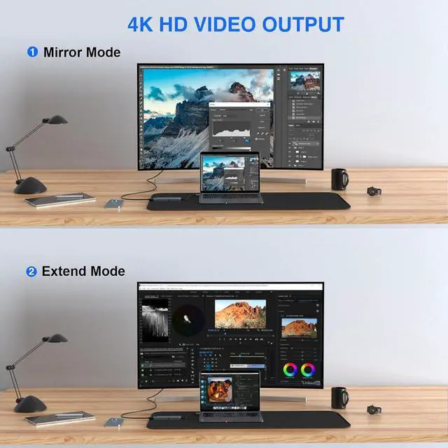 Outstanding 4K HDMI Support: Effortlessly mirror or extend your display using the HDMI slot with 4K@30Hz effect. It perfectly synchronize with high-definition TVs, monitors, or projectors, providing an immersive visual experience that enhances both work efficiency and entertainment enjoyment.
